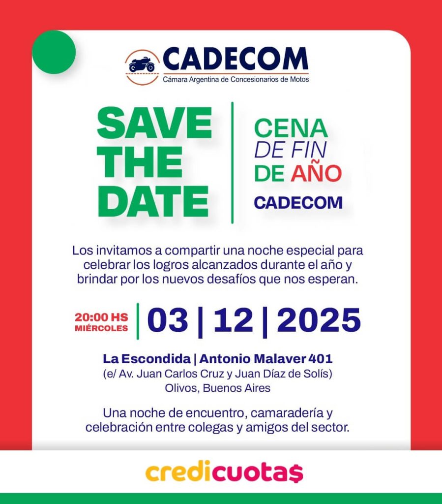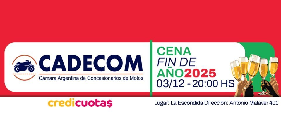 La Cámara Argentina de Concesionarios de Motovehículos (CADECOM) anuncia su tradicional Cena de Fin de Año, un encuentro que reúne a los principales referentes del sector para celebrar un ciclo de trabajo conjunto, compromiso y crecimiento sostenido.
